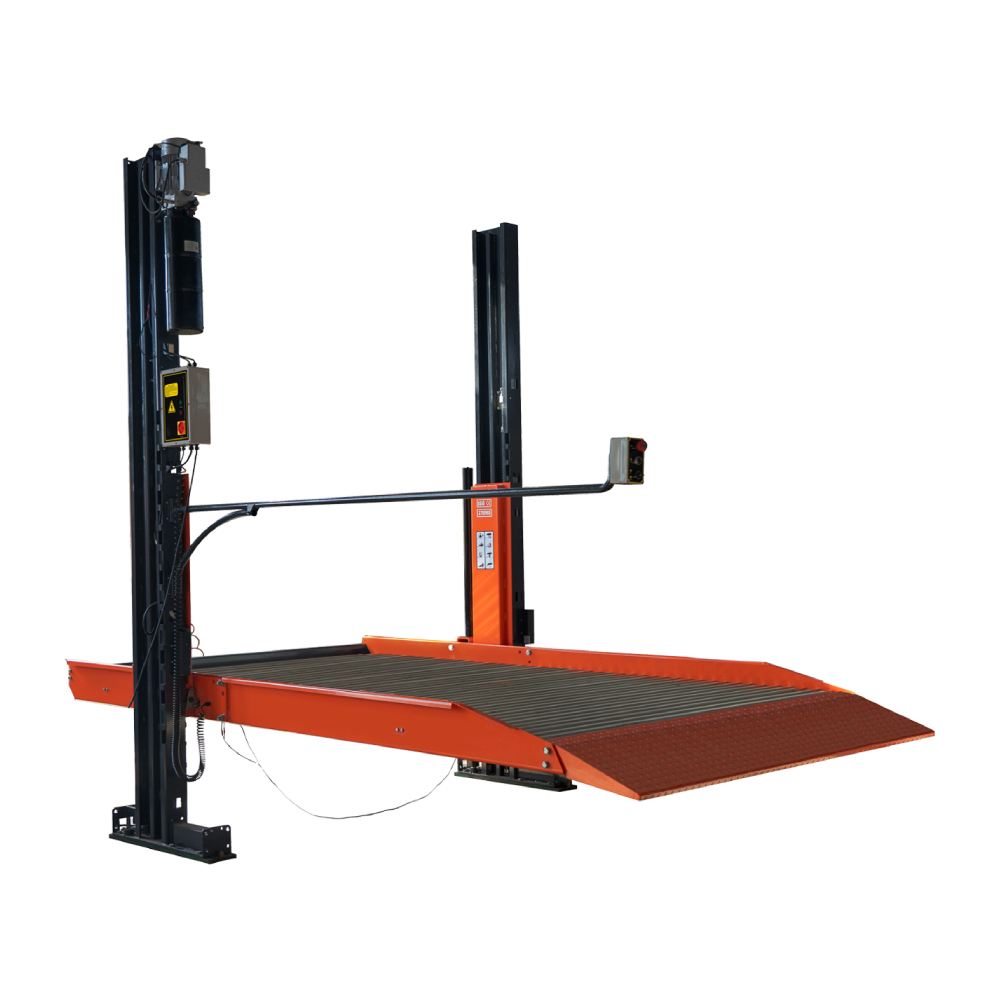 Elevador de parqueamento hidráulico com capacidade para 2.7 toneladas, ideal para otimizar o espaço de estacionamento em garagens privadas, oficinas ou estacionamentos comerciais. Projetado para instalação modular, pode ser utilizado isoladamente ou em sequência com o modelo Kroftools 9882.