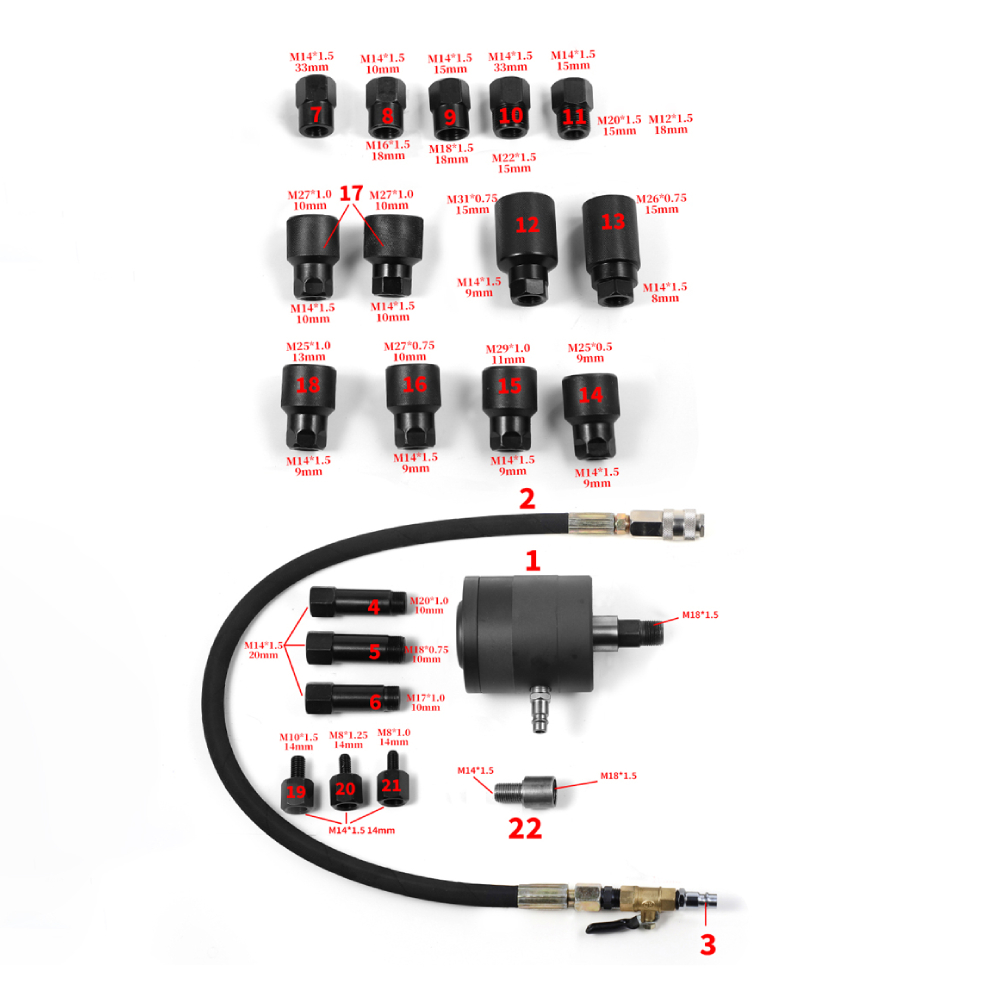 • 20x Adaptadores para múltiplas aplicações e diferentes tipos de injetores